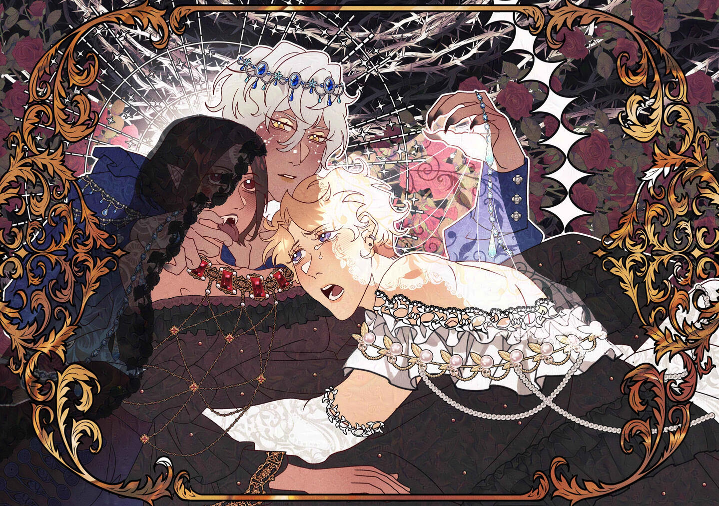 ONGOINGOn the brink of a devastating war between humans and vampires, a desperate political solution emerges, a marriage to unite both worlds. With the vampire king Xaverius Bleuyard already wed to his beloved Nagisa Ran and had a daughter, the burden falls on his younger sister, the enigmatic vampire Princess Rossa.Half-willing, Rossa agrees on one condition, their spouse must be a woman.Arashi Narukami, a fierce princess from the human kingdom and women's rights activist whose rebellion against systemic injustice lands her in chains. As punishment, she's forced into the role of a “sacrificial bride” to the vampire princess she once only heard about in whispered legends.In this fragile union born of politics, punishment, and idealism, can love truly bloom?